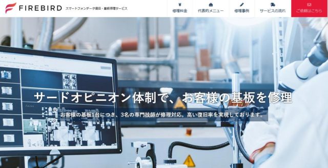 (株)ギアが運営する「FIREBIRD」(ファイアバード)は、スマホデータ復旧や基盤修理を行なうサービスです。
