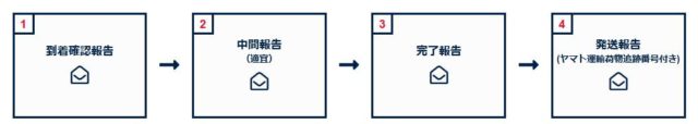 - 調査・修理の実施/必要に応じて中間報告メールの送信