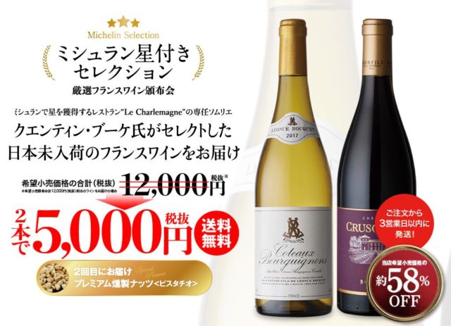 「オールドビンテージ ドットコム」では、ミシュラン星付きレストラン「Le Charlemagne」のソムリエ「クエンティン・ブーケ」氏が厳選するフランスワインの頒布会「ミシュラン星付きセレクション」を行っています。