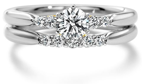 マリッジリングとエンゲージリングとを重ね合わせるセットリングです。