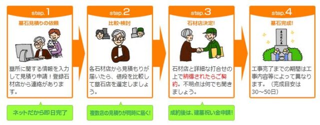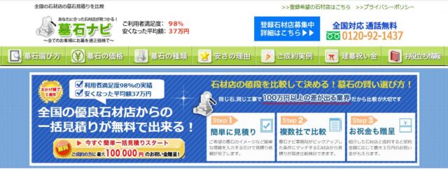 墓石ナビは、独自の審査基準を満たした全国の優良石材店に対して一括見積もりが行なえます。
