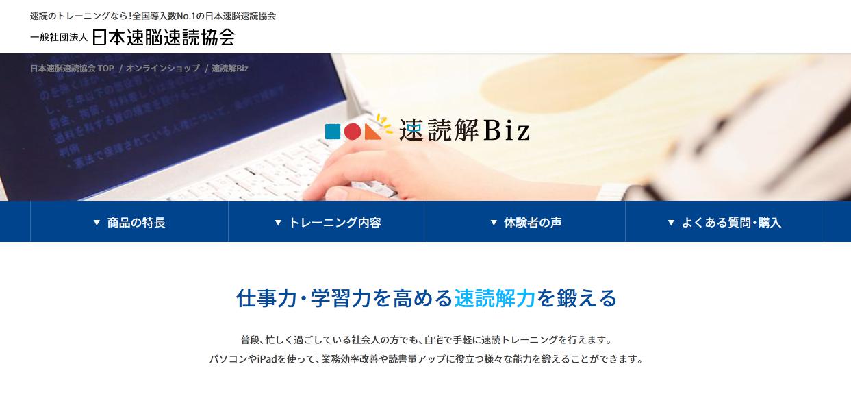 日本速脳速読協会の「速読解biz」は、Windowsパソコン・iPadで使える速読トレーニングツールです。