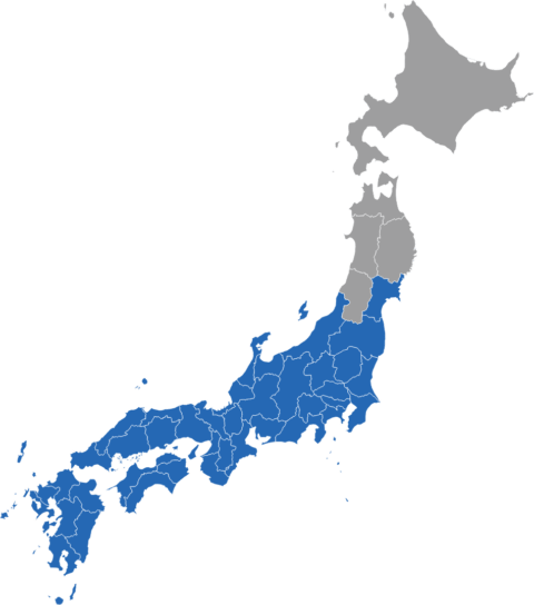 2025年5月時点では、全国各地(青森県、秋田県、岩手県を除く)で給湯器の交換・修理を行っています。(一部離島等を除く)