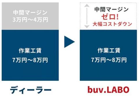 buv.LABO(ヴーブラボ)では、ディーラーに依頼するよりも安くて早く終わる場合が多いです。