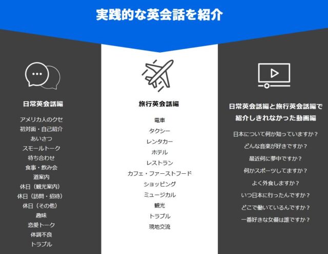 動画ではアメリカ人の超リアルな日常会話を、本当に会話しているかのように聴くことができ、アメリカ人が「週末何をしているのか」、「スタバで注文するときの会話」などなど、リアルなライフスタイルが感じられるところも面白いです!