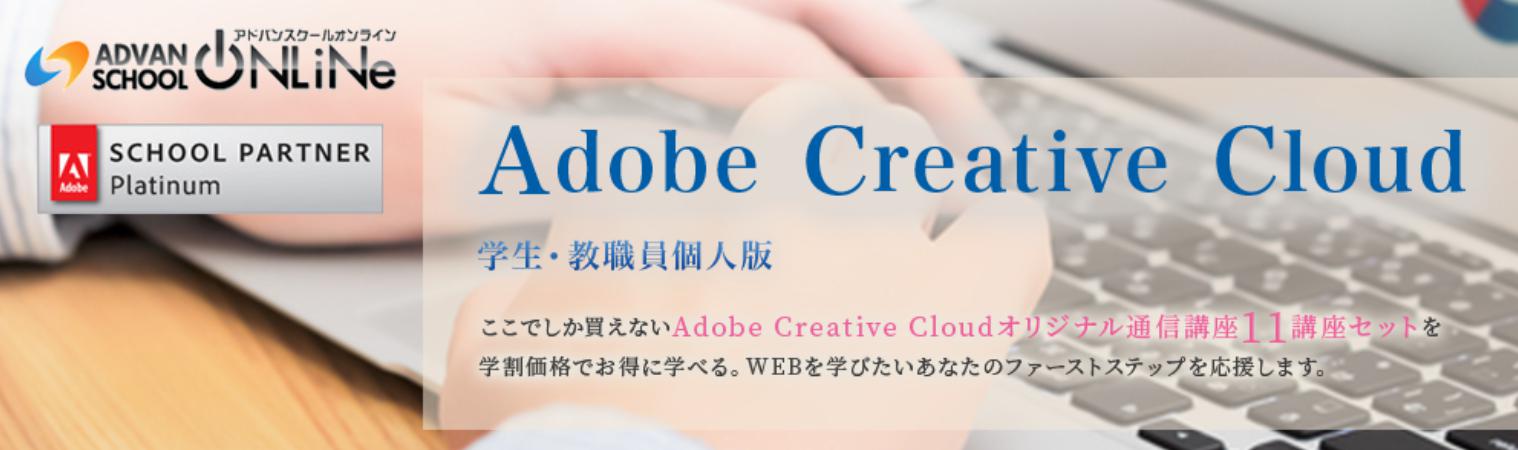 アドバンスクールオンラインを受講すると、学生や教職員でもない一般人が、学割価格でAdobe Creative Cloudのライセンス(1年有効)を購入することができます。