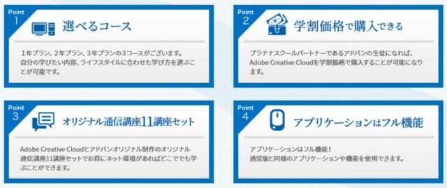 アドバンは「アドビ社のプラチナパートナースクール」であるため、学割価格での販売が特別に認められています。