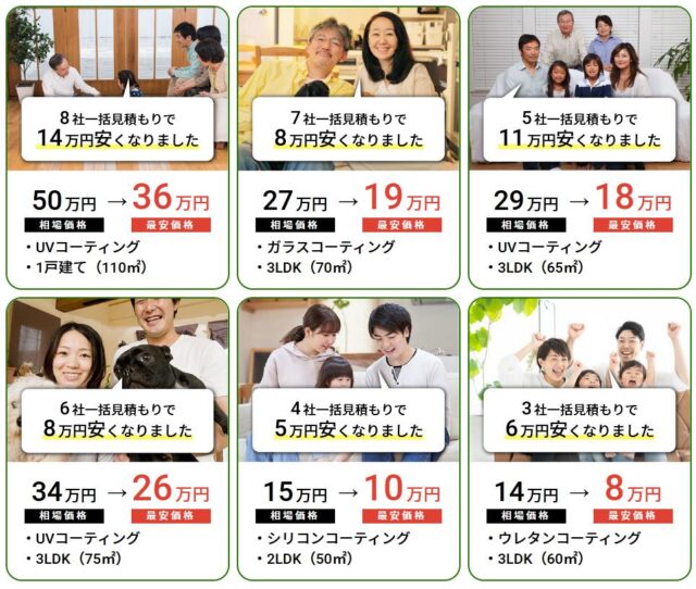 相場の確認や、価格を比較することもできますし、あなたのケースに合った塗料の種類などを知るのにも役立ちます。