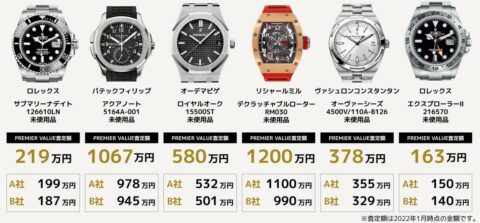 PREMIER VALUE(プレミアムバリュー)の一括査定は、時計、バッグ、ジュエリーに限られますが、高値での売却が期待できます。