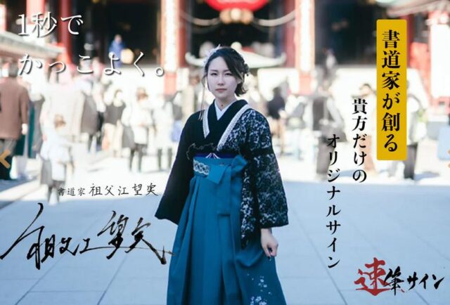 速筆サインは、書道家の祖父江望実さんが、オーダーメイドであなたのための自筆署名・サインを作成します。