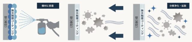 無光触媒エコキメラは、光がなくても抗菌・抗ウイルス性能を持つという触媒コーティングです。
