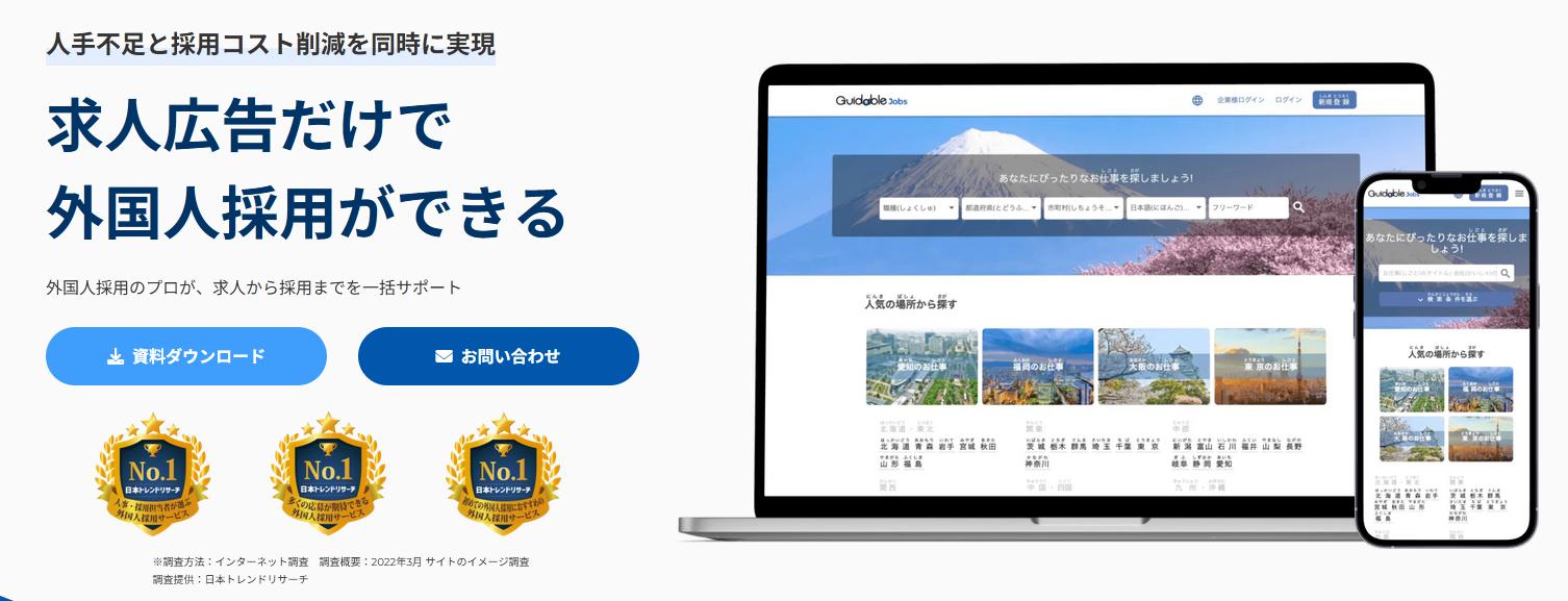 Guidable(株)が運営する「Guidable Jobs」(ガイダブル ジョブス)は、日本で働きたい外国人を簡単に採用できる人材仲介サービスです。