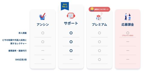 外国人採用に関するノウハウや実績などにあわせて、最適なプランを選ぶといいでしょう。