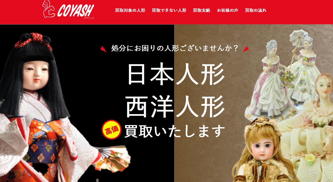 COYASH(コヤッシュ)は、日本人形・西洋人形をはじめとして、さまざまな商品を出張買取しています。