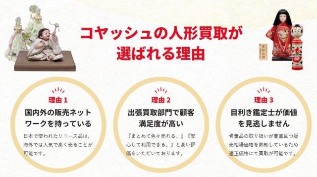 COYASH(コヤッシュ)日本人形・西洋人形の出張買取の特徴をまとめました。