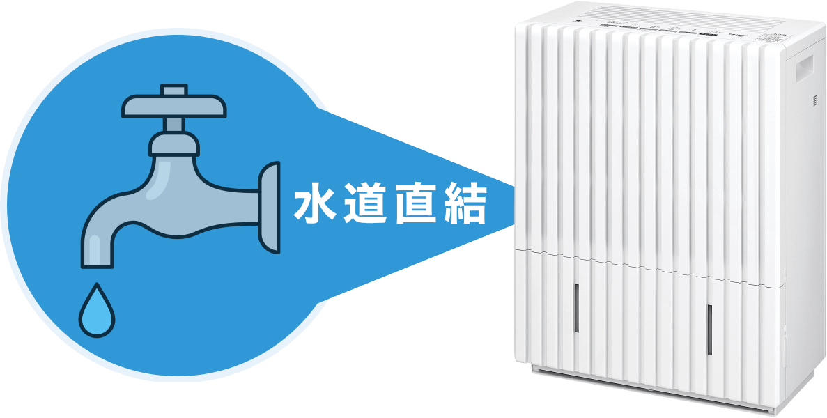 タンクに水を入れる手間が省けますし、加湿器の台数が多くなるほどに便利さが実感しやすくなります。
