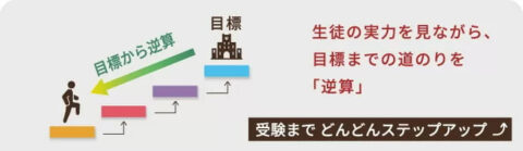 たとえ、現時点では到底達成できないような目標でも、着実に個々のステップを乗り越えていくことで、最終的に目標達成できる実力が身に付きます。