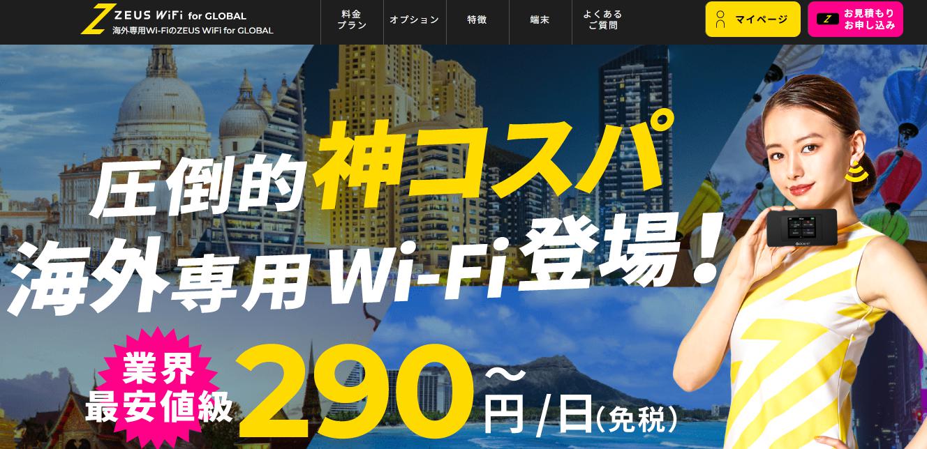 ZEUS WiFi for Globalは海外専用のモバイルWiFiレンタルです。