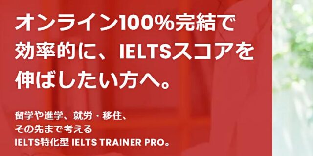 「IELTS TRAINER PRO」という名前の通り、IELTSに特化したオンラインスクールです。