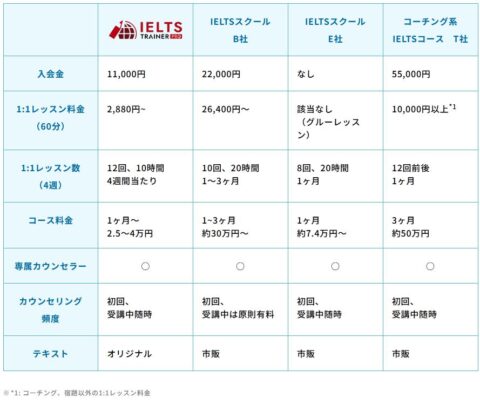 このため、IELTS対策を行う他の英語スクールなどと比べると、受講料が安く済みます。