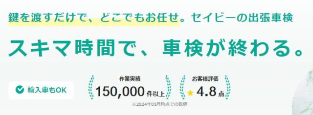 セイビー(Seibii)の出張車検は、2024年03月時点で150,000件を超える実績があります。
