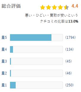 買取価格の振れ幅が大きく一見高いように見えますが、行われるのは足元を見た買い叩きです。