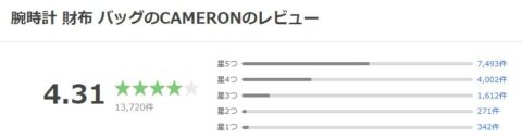 KNIS(ニス)KYOTOを販売する、(株)LIME運営のネットショップ「CAMERON」の評価になりますが、多くの人が高く評価していることがわかります。