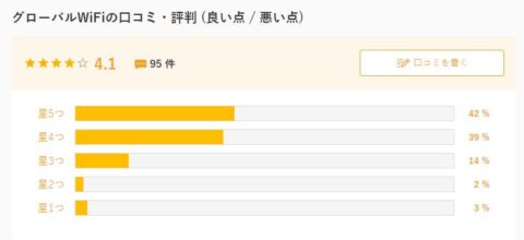 口コミサイトでのグローバルWiFiの評価をまとめました。