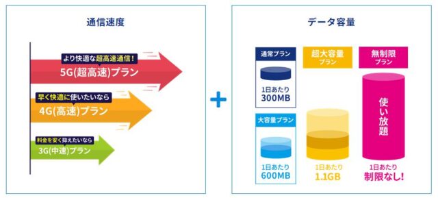 各国・地域の通信事情に応じて、選べる回線(5G・4G/LTE・3G)が異なります。
