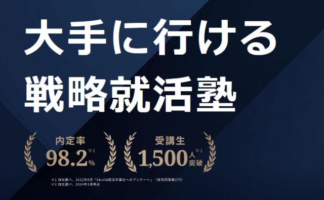 Abuild就活は、内定獲得が極めて難しい難関企業・大手企業などへ採用されるためのノウハウや知識、戦略などを学べる就活塾です。