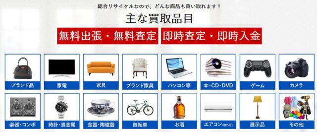 リサイクルオフは総合リサイクル業者のため、家電・家具を中心に数多くの商品を買取・回収できます。