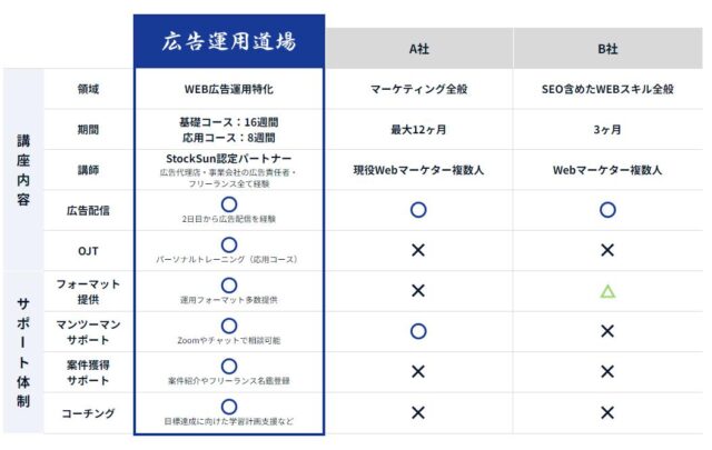 StockSun(ストックサン)広告運用道場の特徴をまとめました。