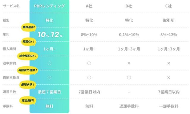 PBR LENDING(PBRレンディング)の特徴をまとめました。