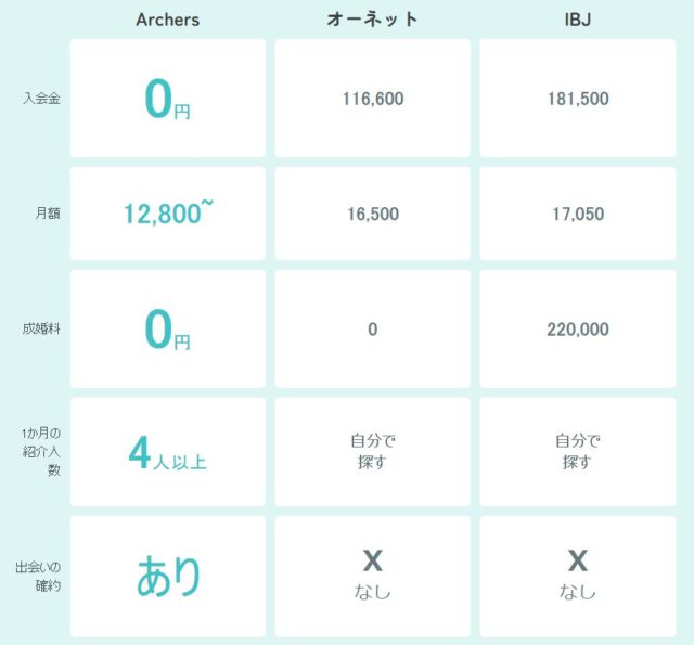 婚活関連は、その他のジャンルなどと比べて不平不満が出やすく、低評価が多くなりやすい傾向が見られますが、Archers(アーチャーズ)は高評価が多いです。