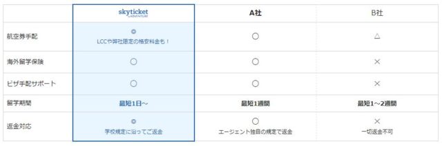 skyticket(スカイチケット)留学の特徴をまとめました。