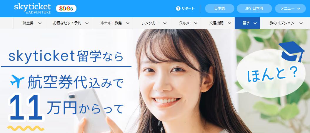 (株)アドベンチャーが運営するskyticket(スカイチケット)留学は、旅行代理店の強みを活かした留学エージェントです。