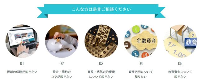 保険の見直し・新規契約だけでなく、資産運用や将来のライフプランに関する相談など、幅広く対応してもらえます。