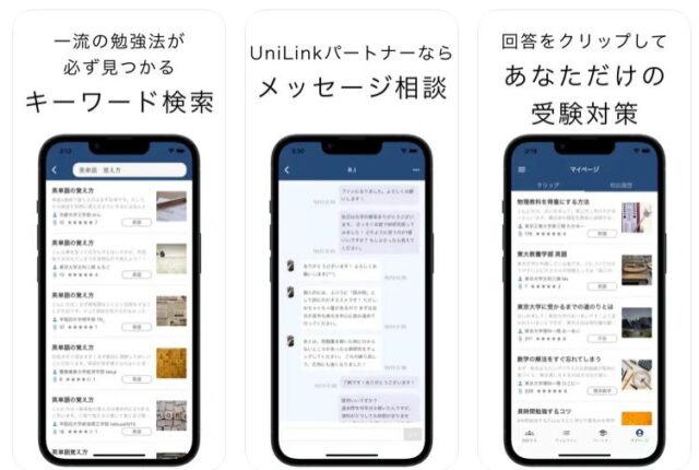 UniLink(ユニリンク)は、東大・京大・早稲田・慶応をはじめとした難関大学に通う大学生に受験相談や学習法などの質問が行えるアプリです。