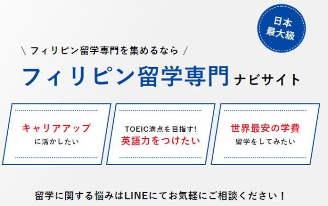 「フィリピン留学ナビ」という名前の通り、フィリピンに特化した留学エージェントです。