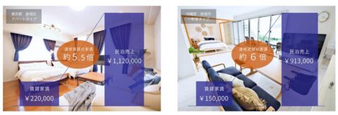 東京都内の20㎡のワンルームマンションでは、賃貸した際の想定賃料が10万円のところ、民泊として運営をした場合には、運営経費などを差し引いて35万円以上の売り上げになる。