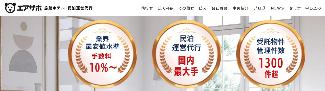エアサポ 旅館・ホテル・民泊運営代行の特徴まとめ