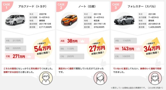あなたが売りたい車の概算買取価格(過去1年間の取引価格から推定)は依頼した時点でわかるため、買取価格の交渉をする際などに役立ちます。