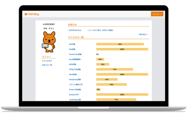 manaby(マナビー)では、ITスキルを身につけるためにeラーニングシステムを独自開発しています。