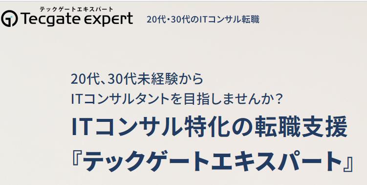 テックゲートエキスパートは、ITコンサルの未経験者でも利用できる転職支援サービスです。