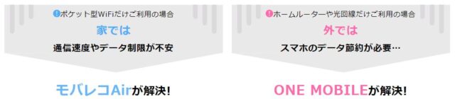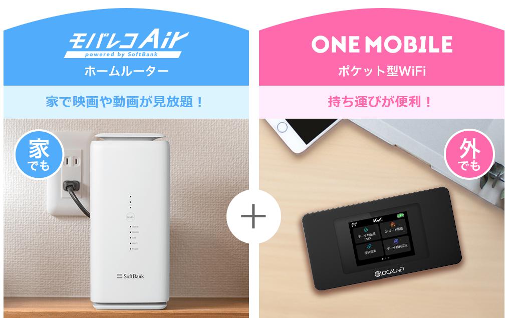 WiFi革命セットは、ホームルーター(モバレコAir)とモバイルルーター(ONE MOBILE)がセットになっています。