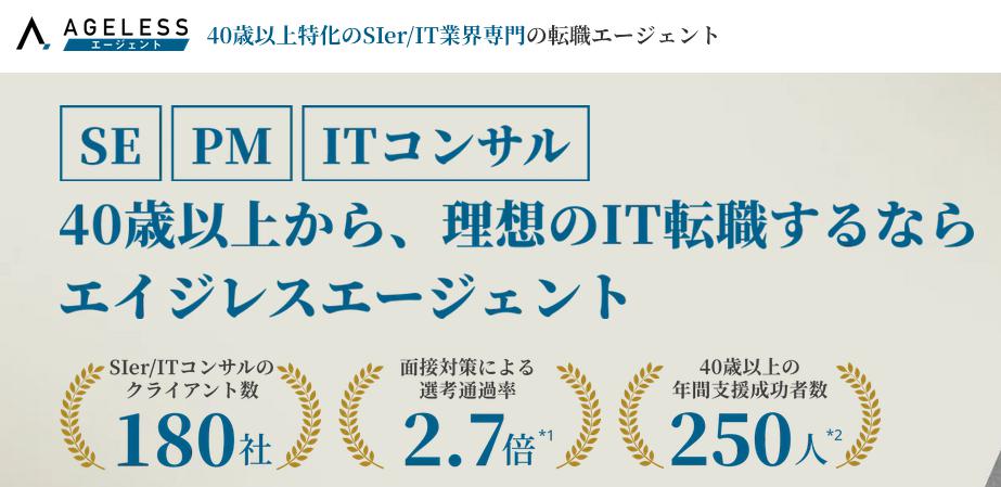 一方、エイジレスエージェントは、40代以上に特化したIT専門の転職支援サービスです。