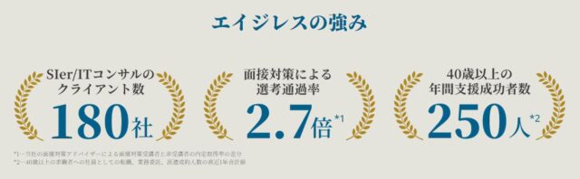 面接通過率は2.7倍と高く、しっかりとした転職支援を行っていることがわかります。