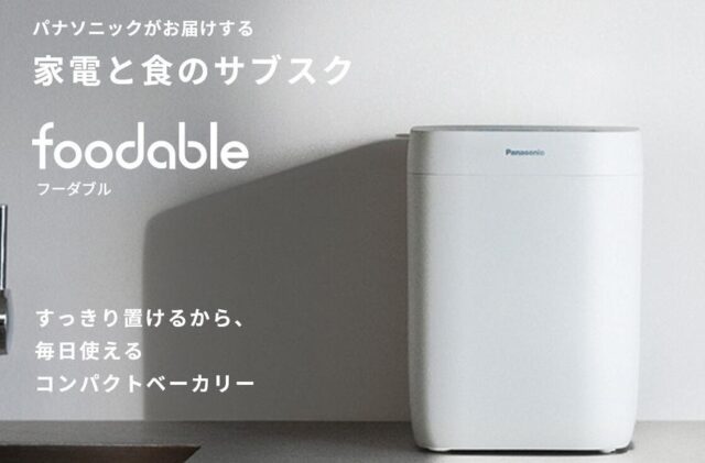パナソニックのfoodable(フーダブル)コンパクトベーカリーとパンミックスコースは、新品の「コンパクトベーカリー」と、毎月送られてくる「パンミックス」がセットになったサブスクです。