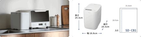 本体は約A4サイズの大きさとなっており、1回で約0.6斤の食パンを作ることができます。