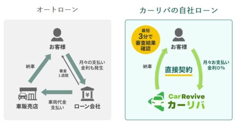 リバイブ(株)が運営する「カーリバ」は、自社ローンによる中古車販売を行っています。